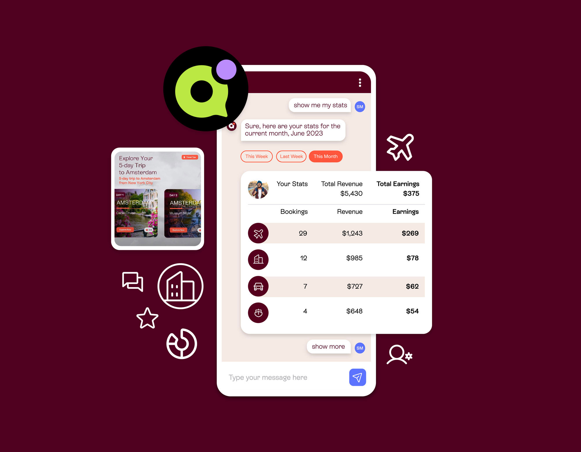 Our platform combines leading technologies such as generative AI, deep learning, computer vision, and a recommendation engine – along with conversational commerce – to transform the travel booking process.